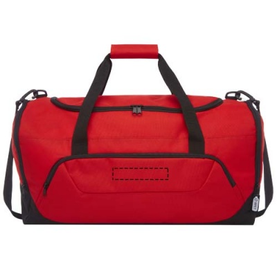 Tålig duffelväska tillverkad av 100 % återvunnen plast som bidrar till att minska plastavfall. Har stort huvudfack och blixtlåsficka framtill, vadderad axelrem och vadderade handtag. Cirka 27 flaskor återvinns för att göra den här väskan.
