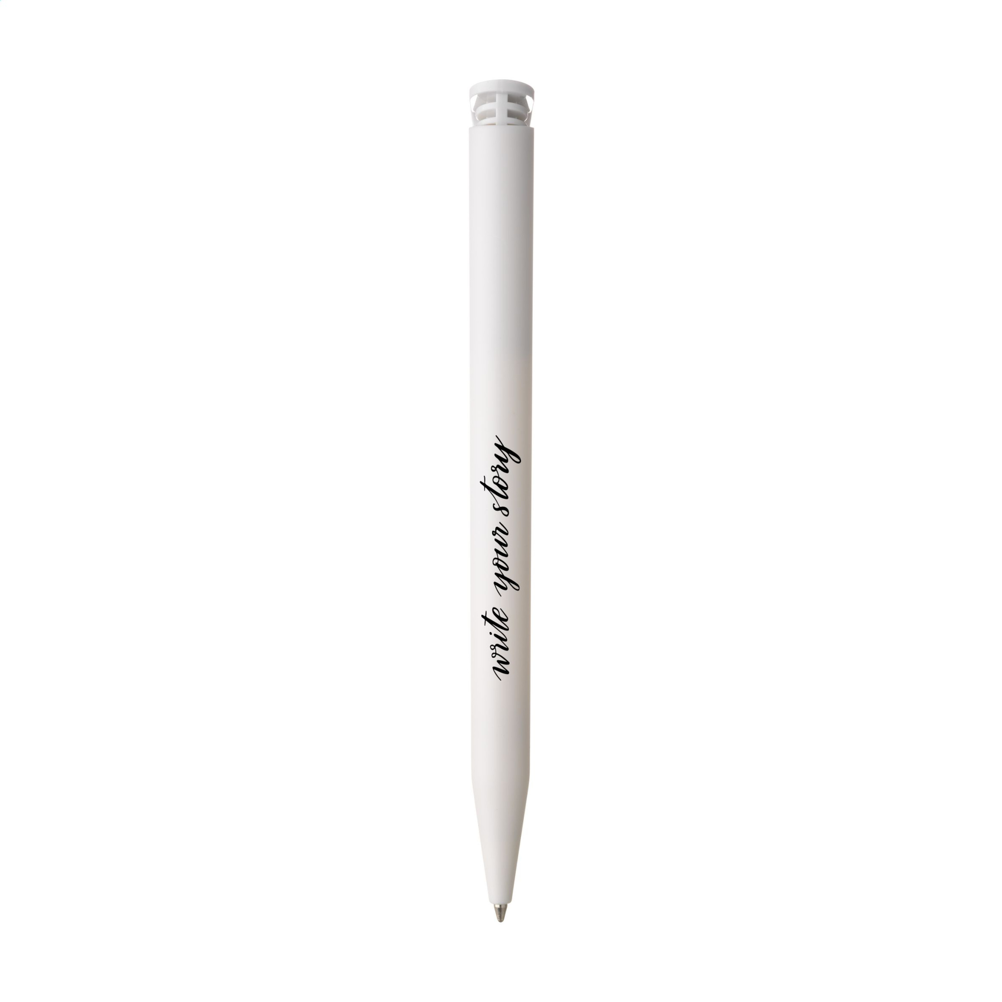 Kulspetspenna med blått bläck från märket Senator®. Det matta fatet är tillverkat av PLA-granulat på basis av sockerrör och är därför biologiskt nedbrytbart. Pennan är producerad med grön energi och processer certifierade enligt ISO 14001 miljöstandard. Med en stor klämma/tryckknapp. Tillverkad i Tyskland.