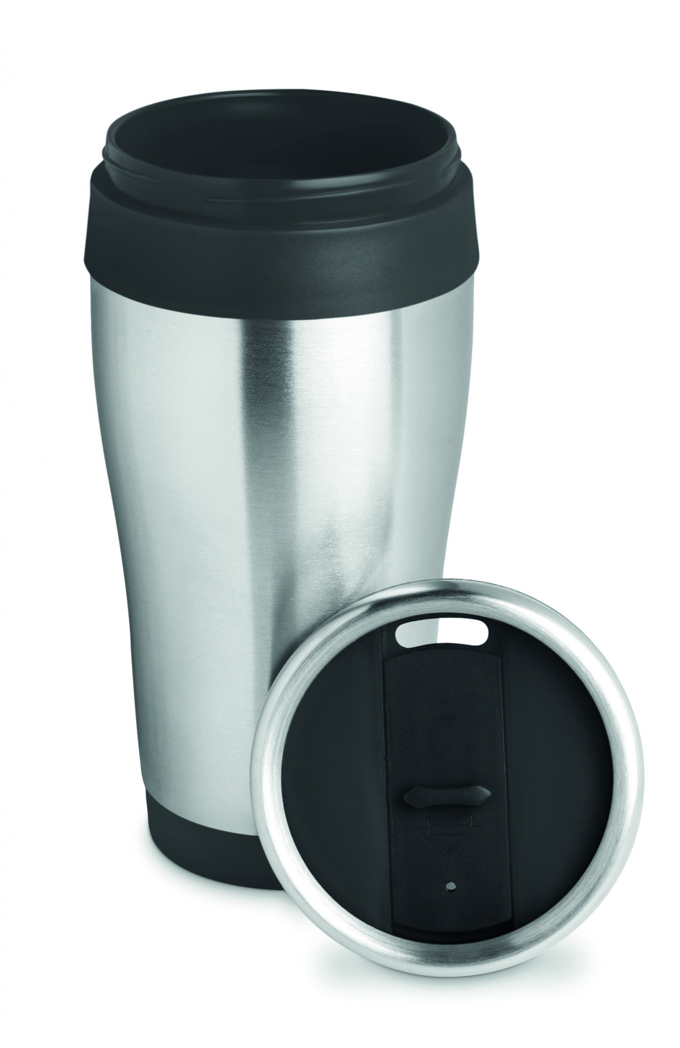 Resemugg med praktiskt ''on the go'' lock i rostfritt stål utvändigt och PP plast invändigt. Volym 455 ml.