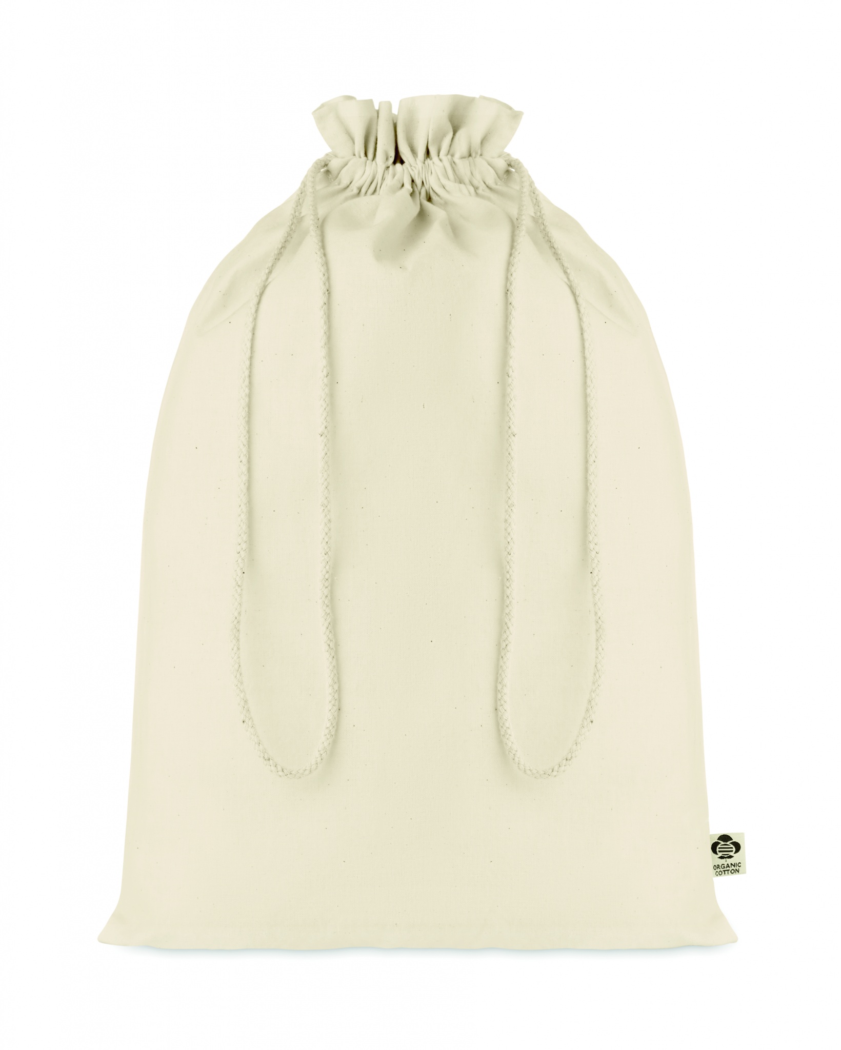 Stor presentpåse med dragsko i ekologisk bomull. Storlek ca 30 x 47 cm. 105 gr/m².