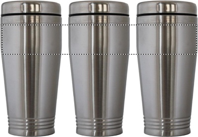 Take away mugg med dubbelvägg i rostfritt stål. Lock i svart PP med glidlock som täcker öppningen för att hålla värmen bättre. Volym: 400ml.